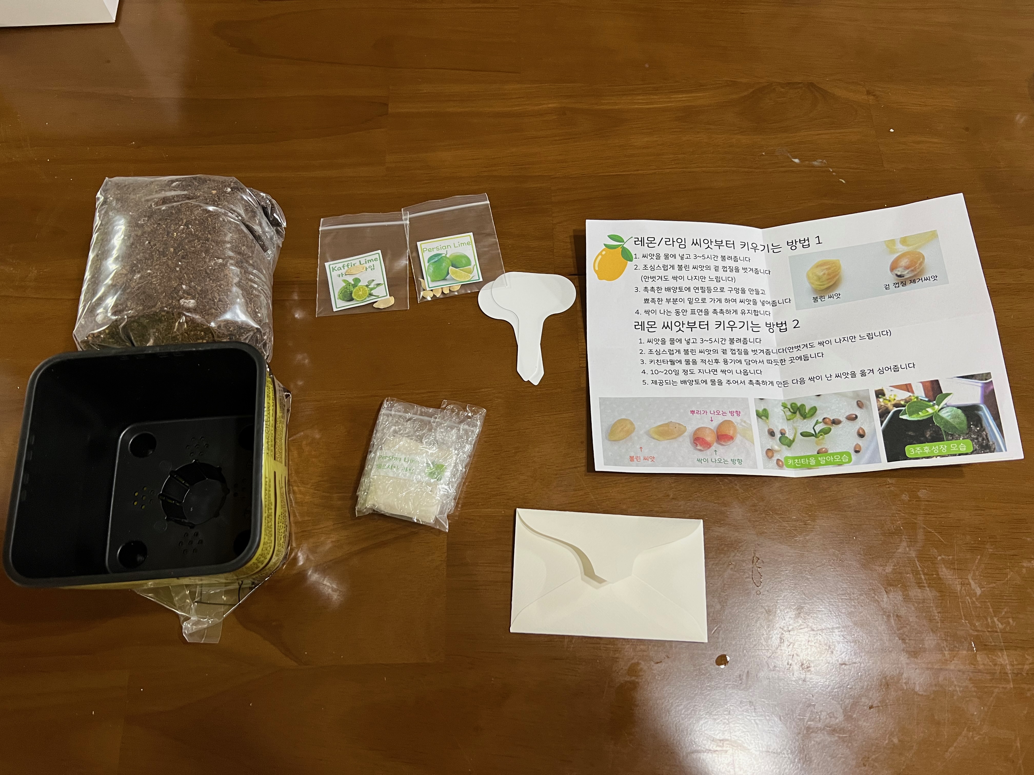 페르시안 라임과 키 라임 키우기 세트를 구입했는데 카피르 라임과 멕시칸 라임 씨앗도 함께 보내줬다.