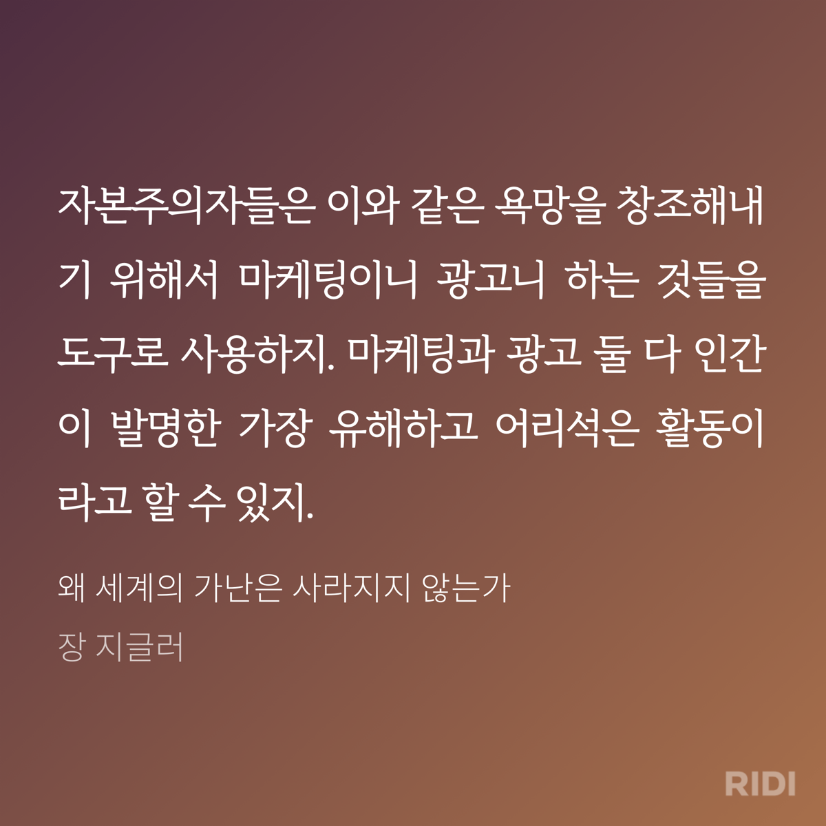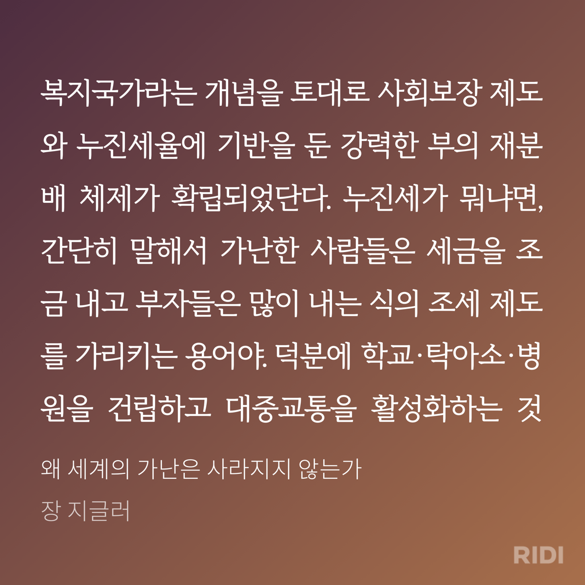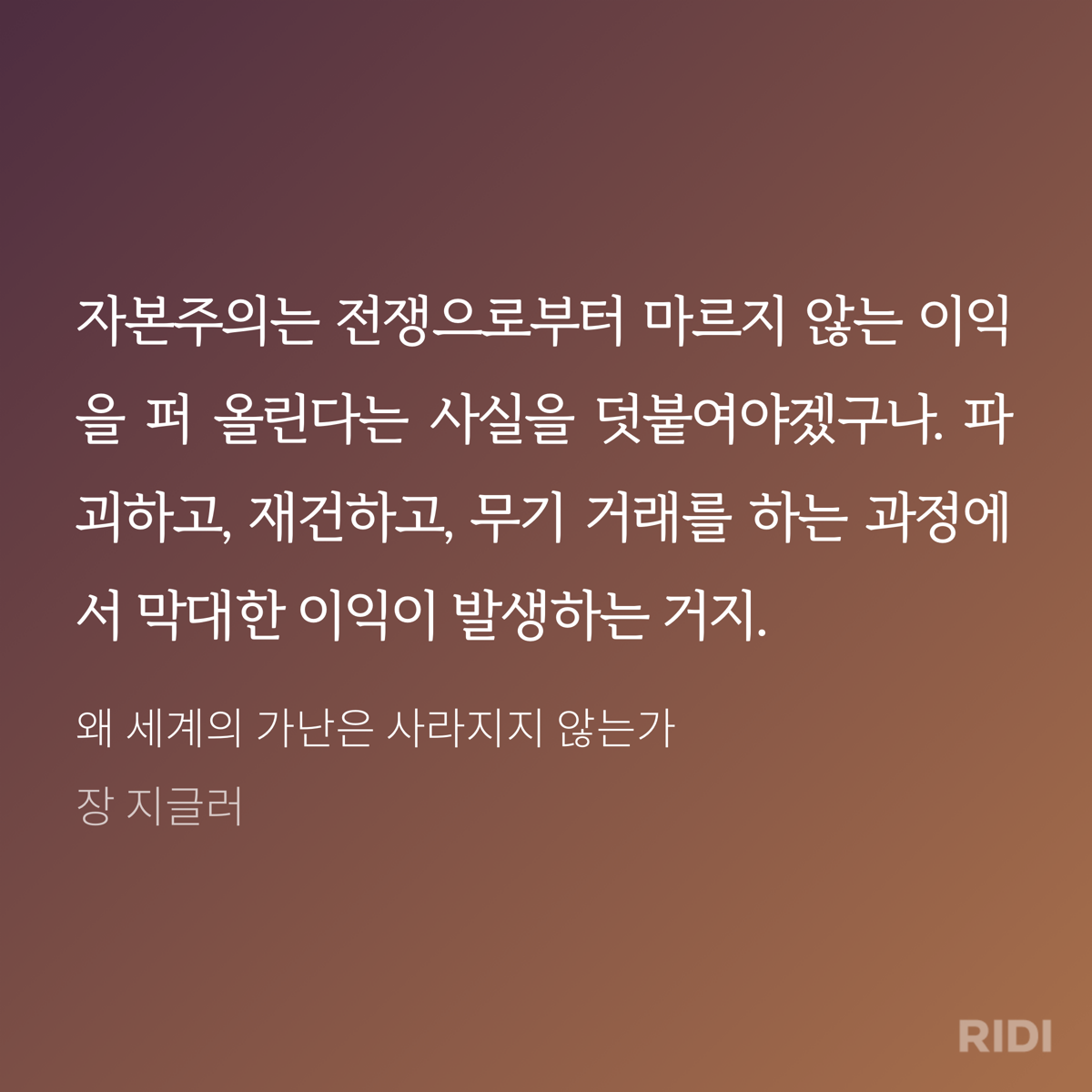 저자는 책을 통해 신자유주의를 추앙하는 자본주의를 비판한다. 지금까지 내가 알고 있는 자본주의에 대한 생각이 잘못되었다는 인식하게 했다. 새천년이 시작된 이후 인류는 역사상 처음으로 물자의 풍족함을 누리고 있다. 지구에는 부가 넘치고 있다. 사용 가능한 물자의 양이 인류에게 꼭 필요한 만큼을 훨씬 뛰어넘고 있다. 그럼에도 왜 세계의 가난은 사라지지 않을까? 왜 세계의 절반은 굶주리는가? 작가는 그 원인으로 자본주의를 지목하고 있다. 불평등의 문제다. 욕심을 버릴 수 있다면, 모두가 적어도 굶주림으로 인해 죽어가는 이들은 없을 텐데 그렇지 못하다.