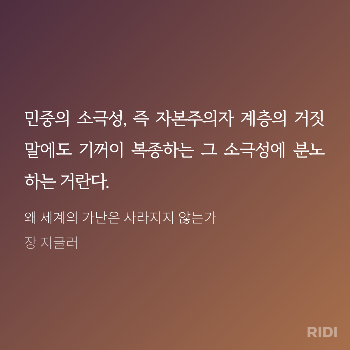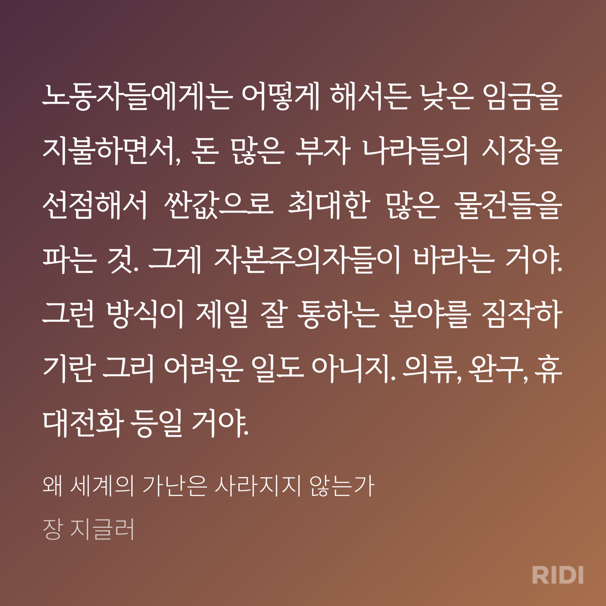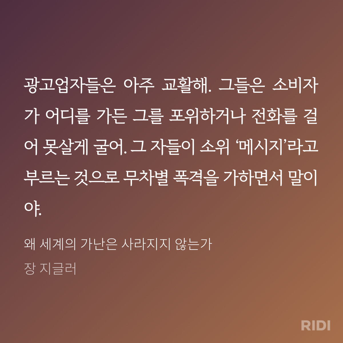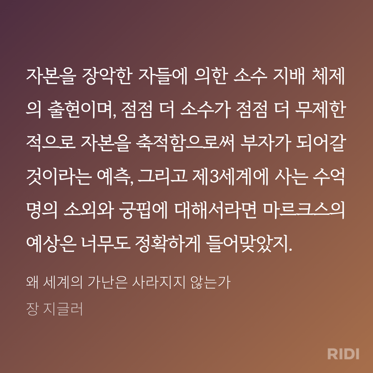 저자는 책을 통해 신자유주의를 추앙하는 자본주의를 비판한다. 지금까지 내가 알고 있는 자본주의에 대한 생각이 잘못되었다는 인식하게 했다. 새천년이 시작된 이후 인류는 역사상 처음으로 물자의 풍족함을 누리고 있다. 지구에는 부가 넘치고 있다. 사용 가능한 물자의 양이 인류에게 꼭 필요한 만큼을 훨씬 뛰어넘고 있다. 그럼에도 왜 세계의 가난은 사라지지 않을까? 왜 세계의 절반은 굶주리는가? 작가는 그 원인으로 자본주의를 지목하고 있다. 불평등의 문제다. 욕심을 버릴 수 있다면, 모두가 적어도 굶주림으로 인해 죽어가는 이들은 없을 텐데 그렇지 못하다.
