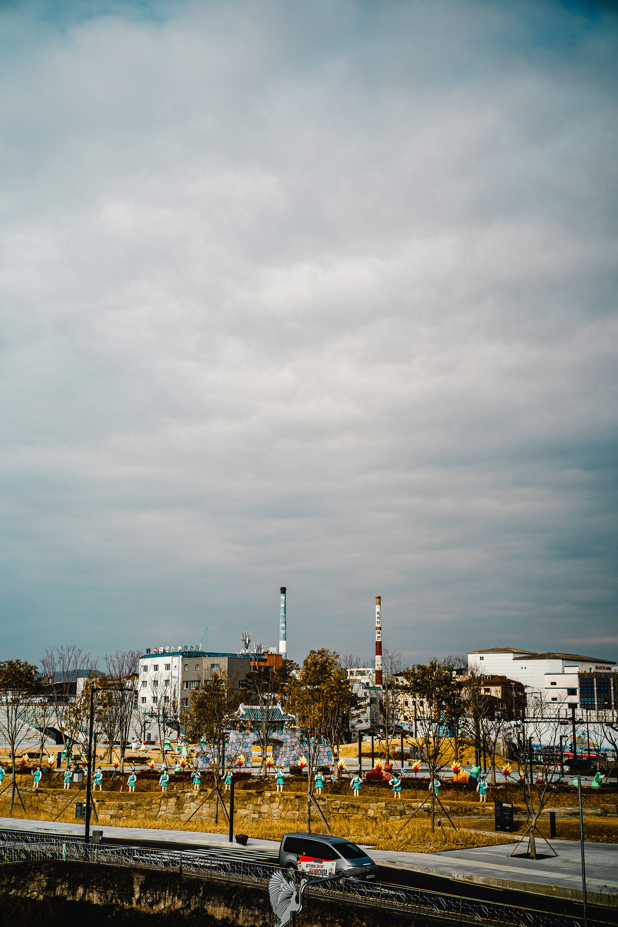 다리 위에서 잠시 멈춰 서서 필름 카메라(미놀타 XD + 코닥 포트라 400)로도 몇 장을 담아보았다. 필름 특유의 따뜻한 색감이 이 흐린 풍경과 잘 어울릴 것 같았다. 그러나 아쉽게도 이날 필름 한롤을 다 채우지 못해 아직 현상과 스캔을 보내지 못했다.