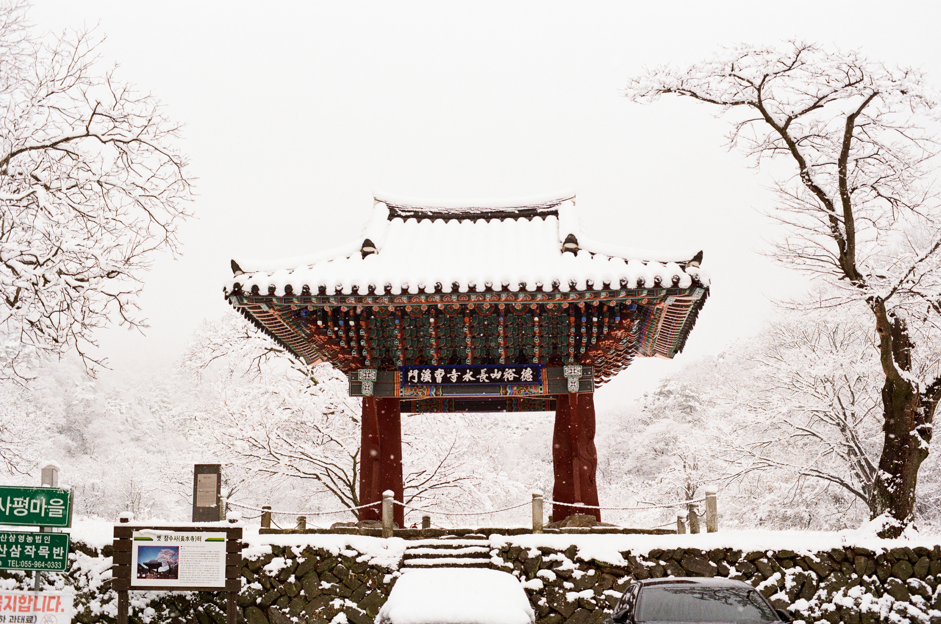 그리고 함양에 도착하니, 온 세상이 하얗게 변해 있었습니다. 심지어 도착한 순간에도 함박눈이 펑펑 내리고 있었죠.