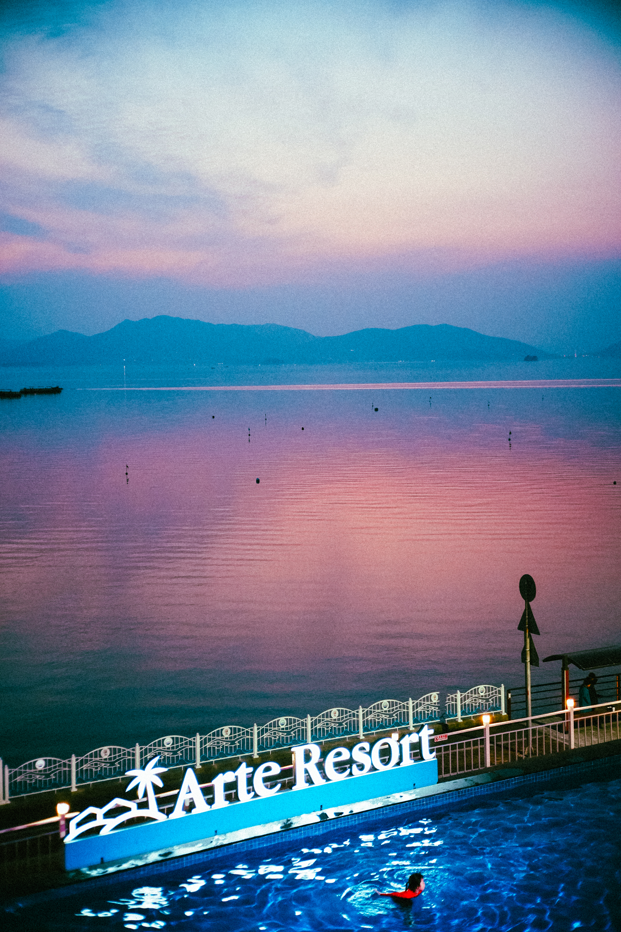 사진으로도 담아두었지만, 실제로 보면 더 감동적인 순간이었어요. 영화가 시작되기 전, 바닷바람을 맞으며 이 순간을 충분히 즐겼죠. "극장에서 일몰을 감상할 수 있다니!" 하는 생각이 들 정도로 멋진 경험이었습니다.