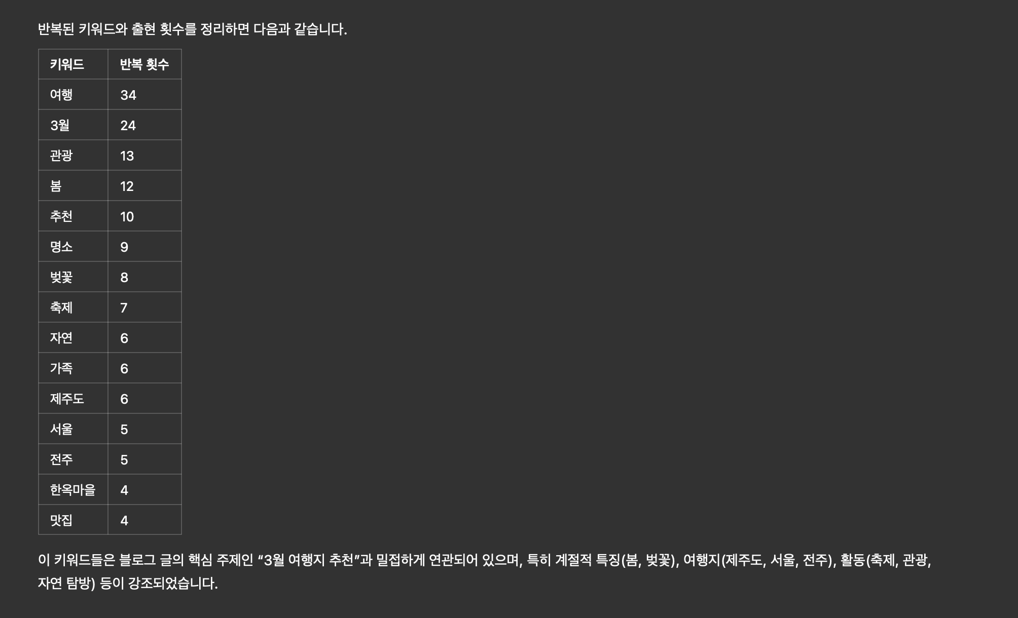 [ GPT가 분석한 키워드와 사용빈도 ]