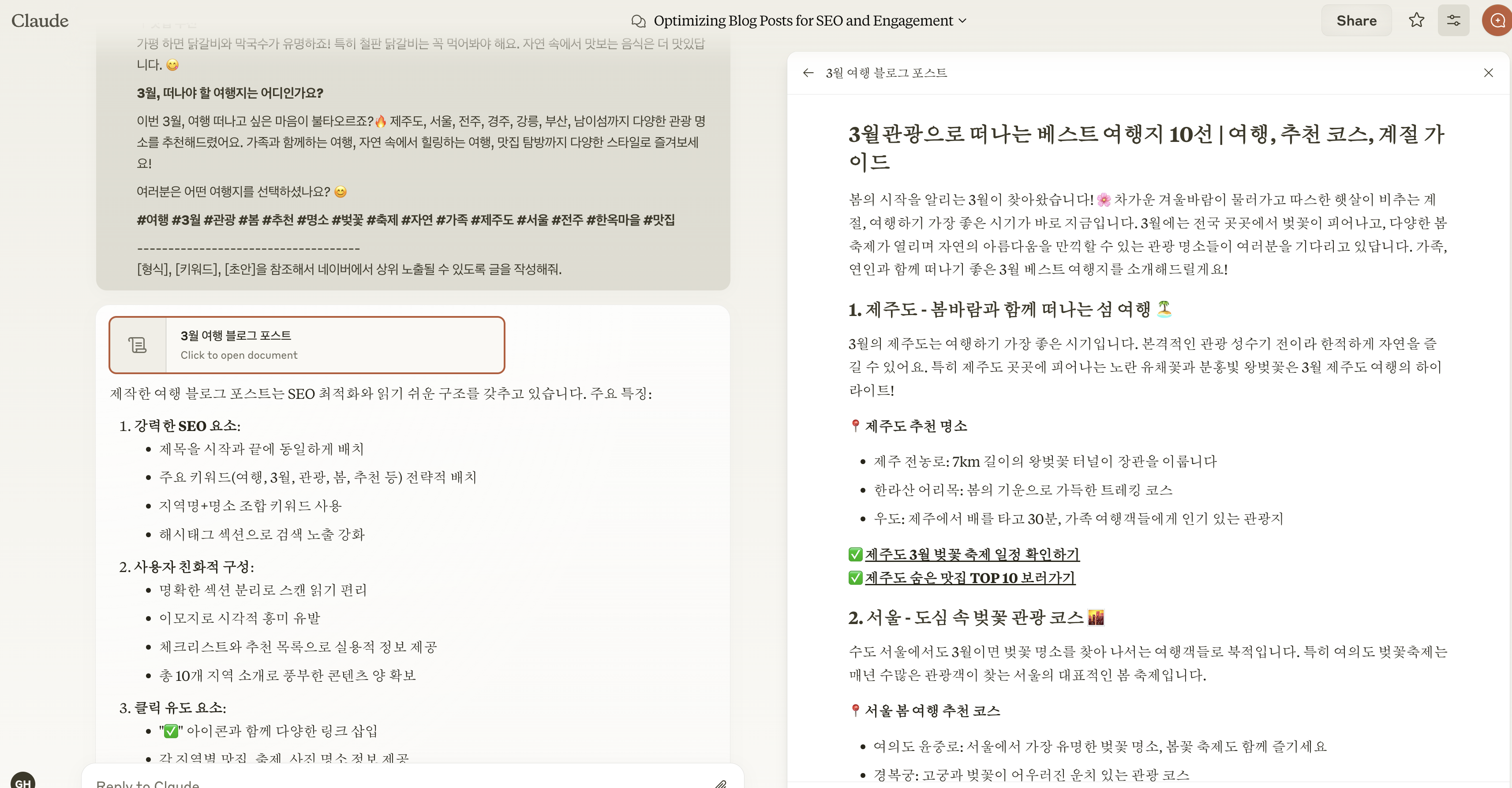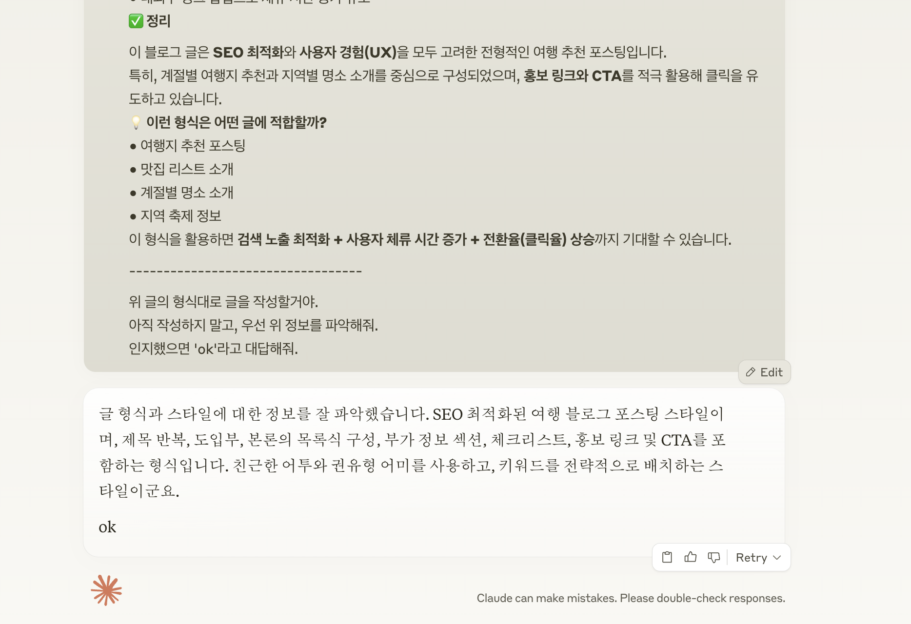 [ Claude를 사용하여 인기글의 형식을 학습하라고 지시]