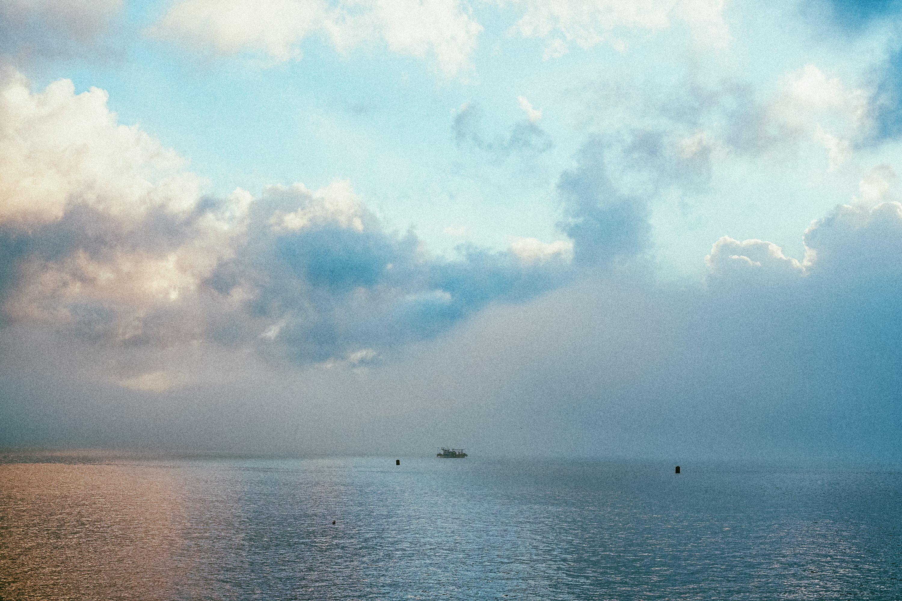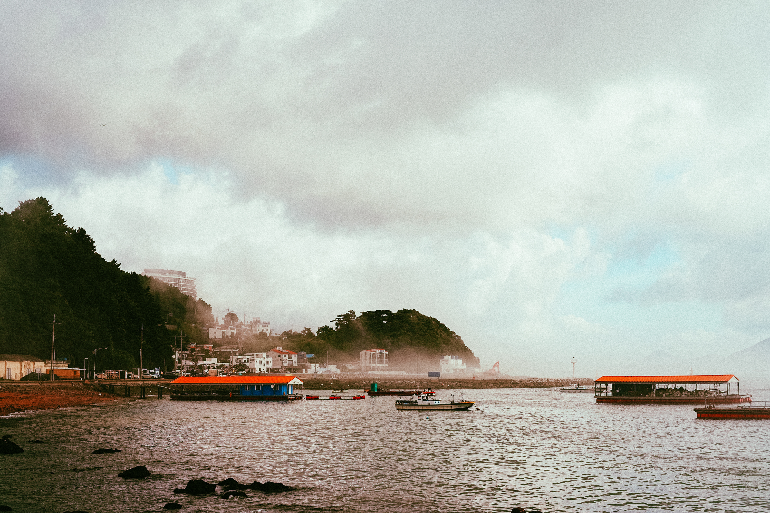 하지만 안개는 쉽게 걷히지 않았어요. 저 멀리서 **뿌~웅** 하고 뱃고동 소리가 들리는데, 배는 보이지 않았죠. 이런 분위기 속에서 사진을 찍는 건 또 다른 매력이었어요.