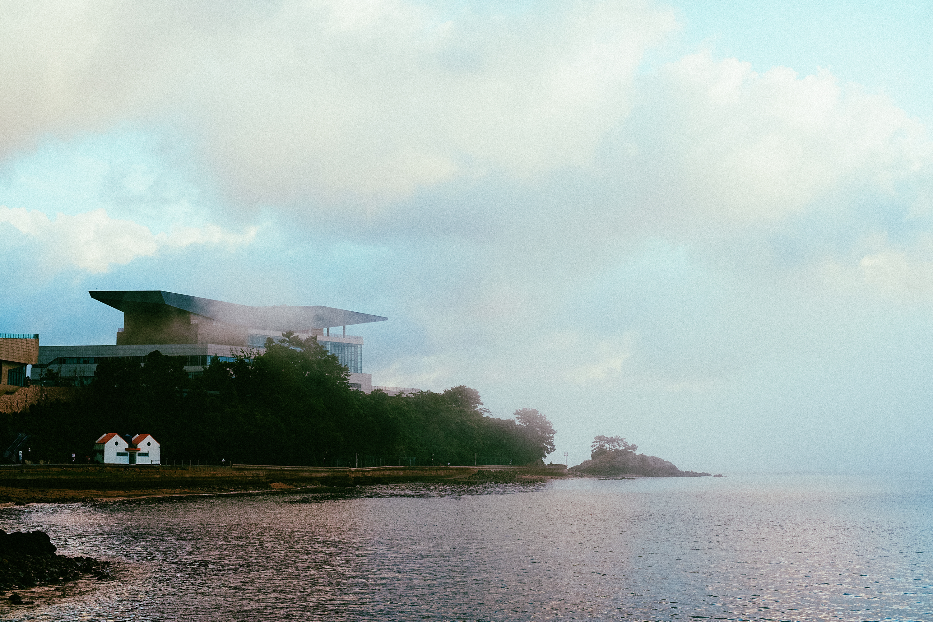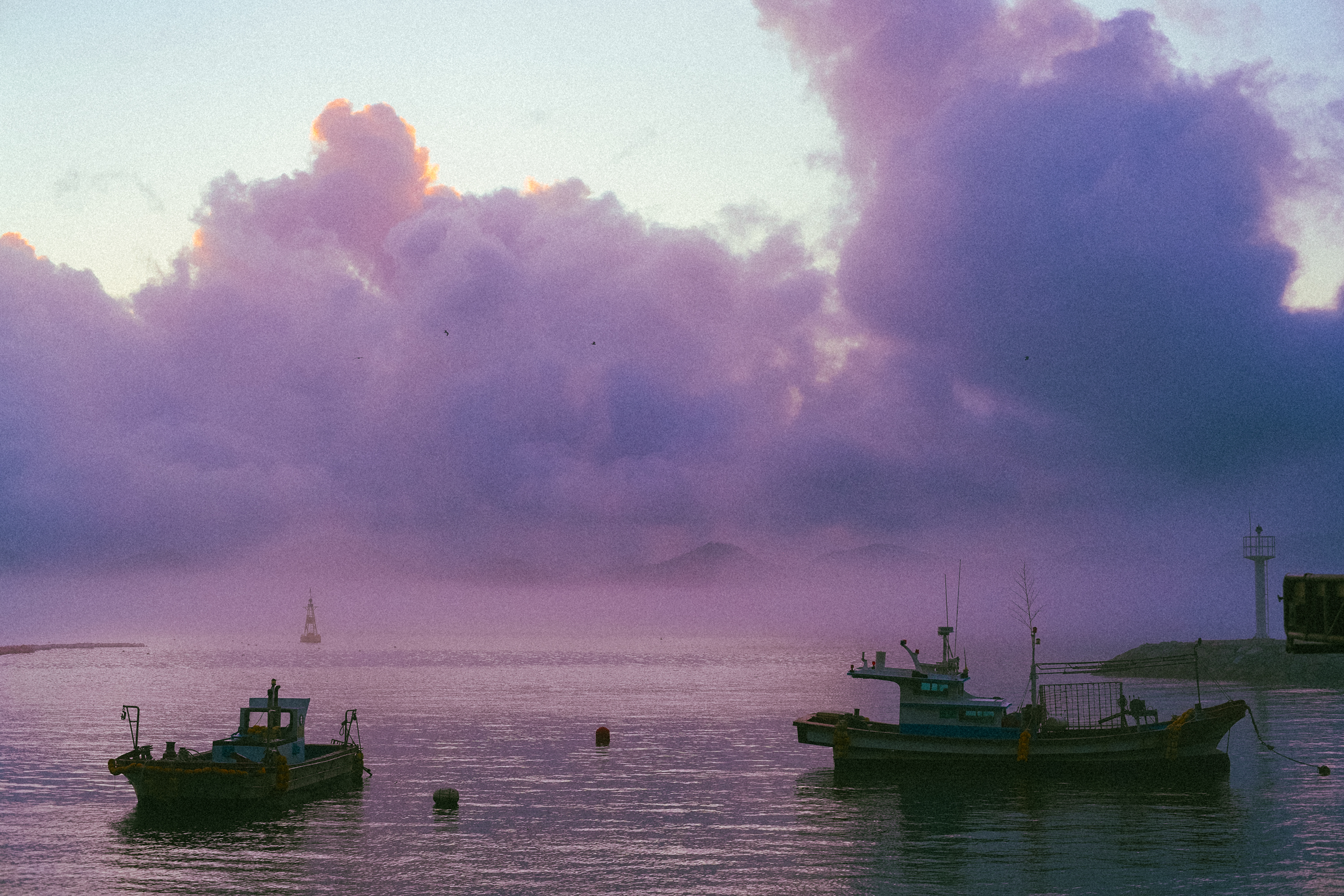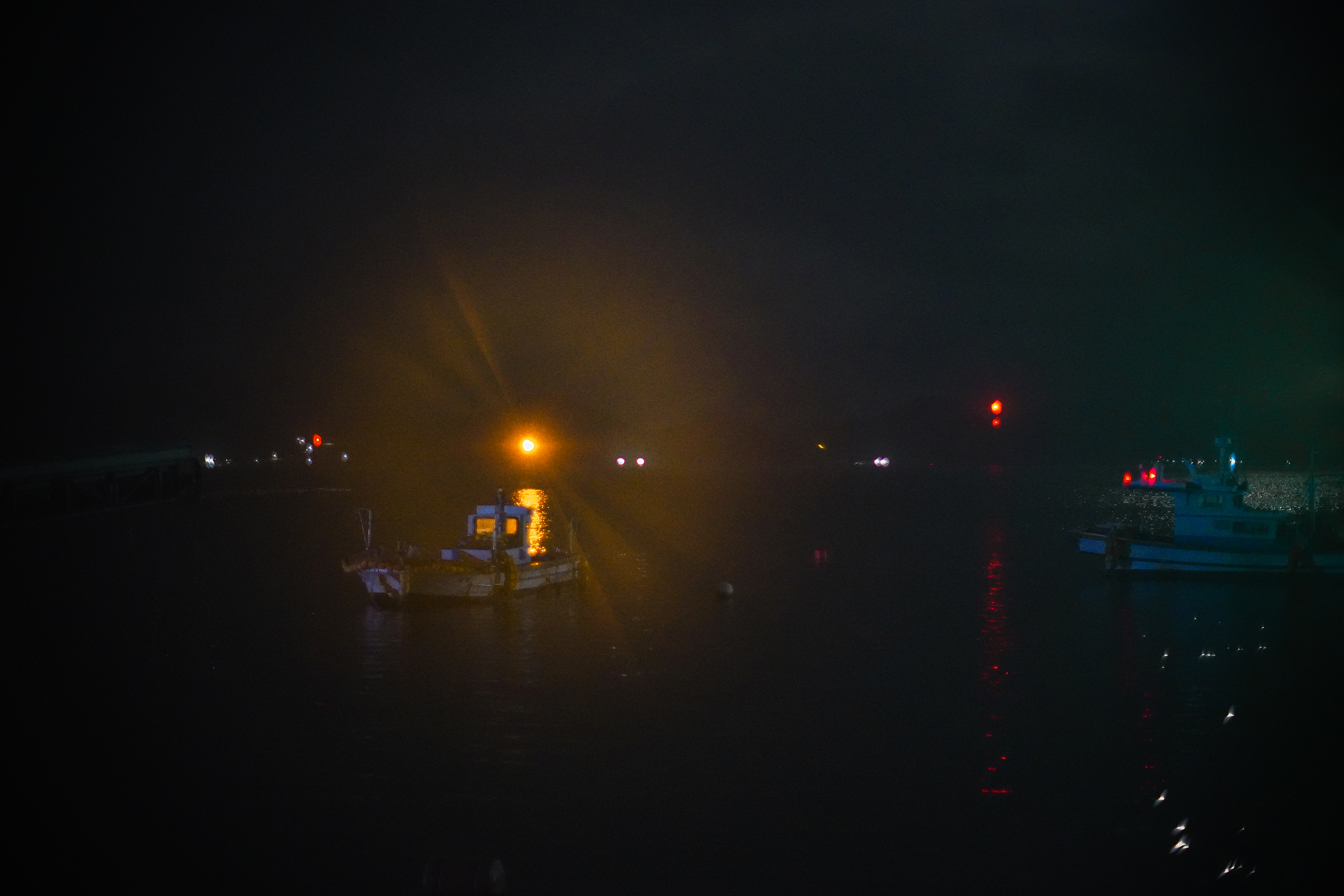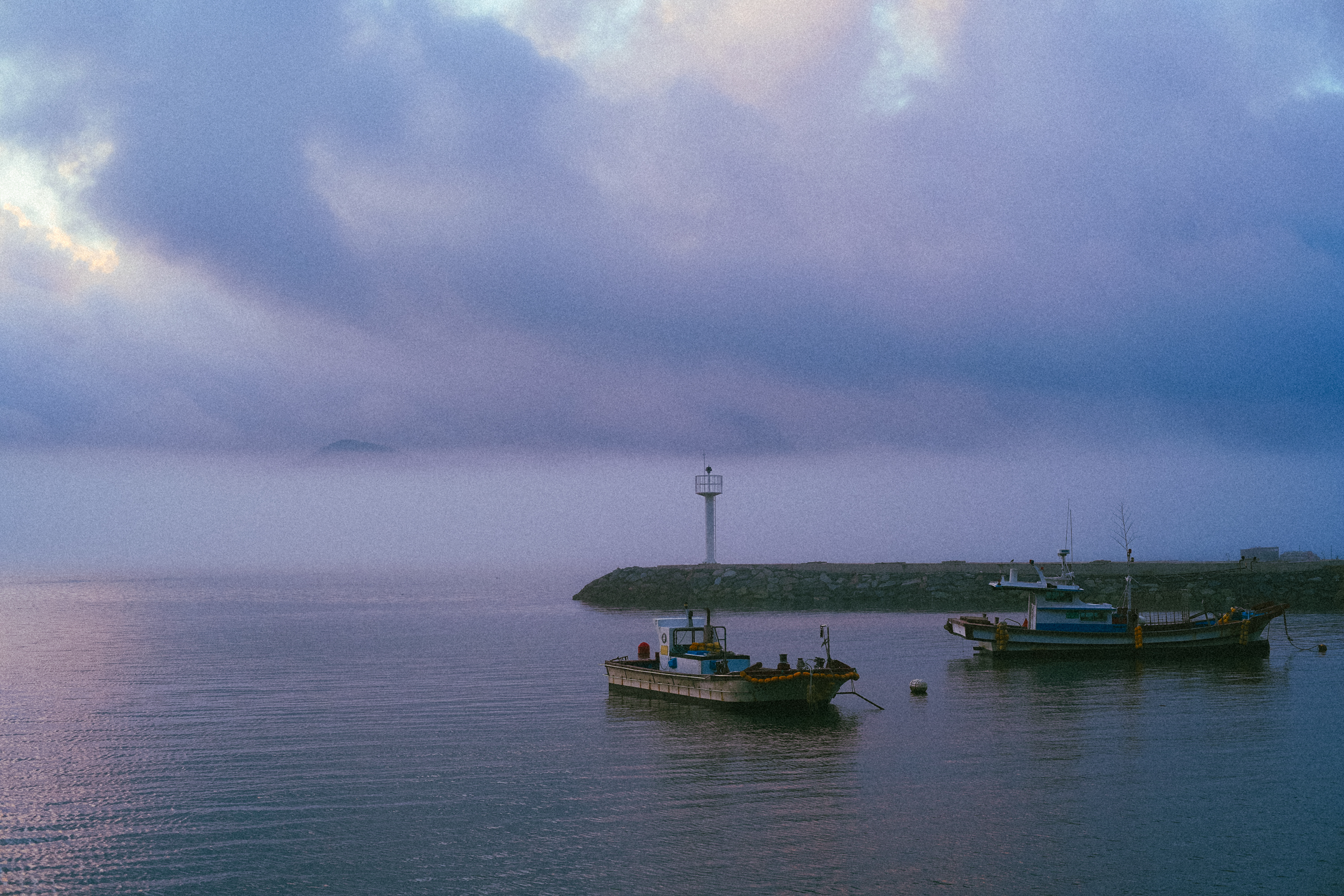 하지만 안개는 쉽게 걷히지 않았어요. 저 멀리서 **뿌~웅** 하고 뱃고동 소리가 들리는데, 배는 보이지 않았죠. 이런 분위기 속에서 사진을 찍는 건 또 다른 매력이었어요.