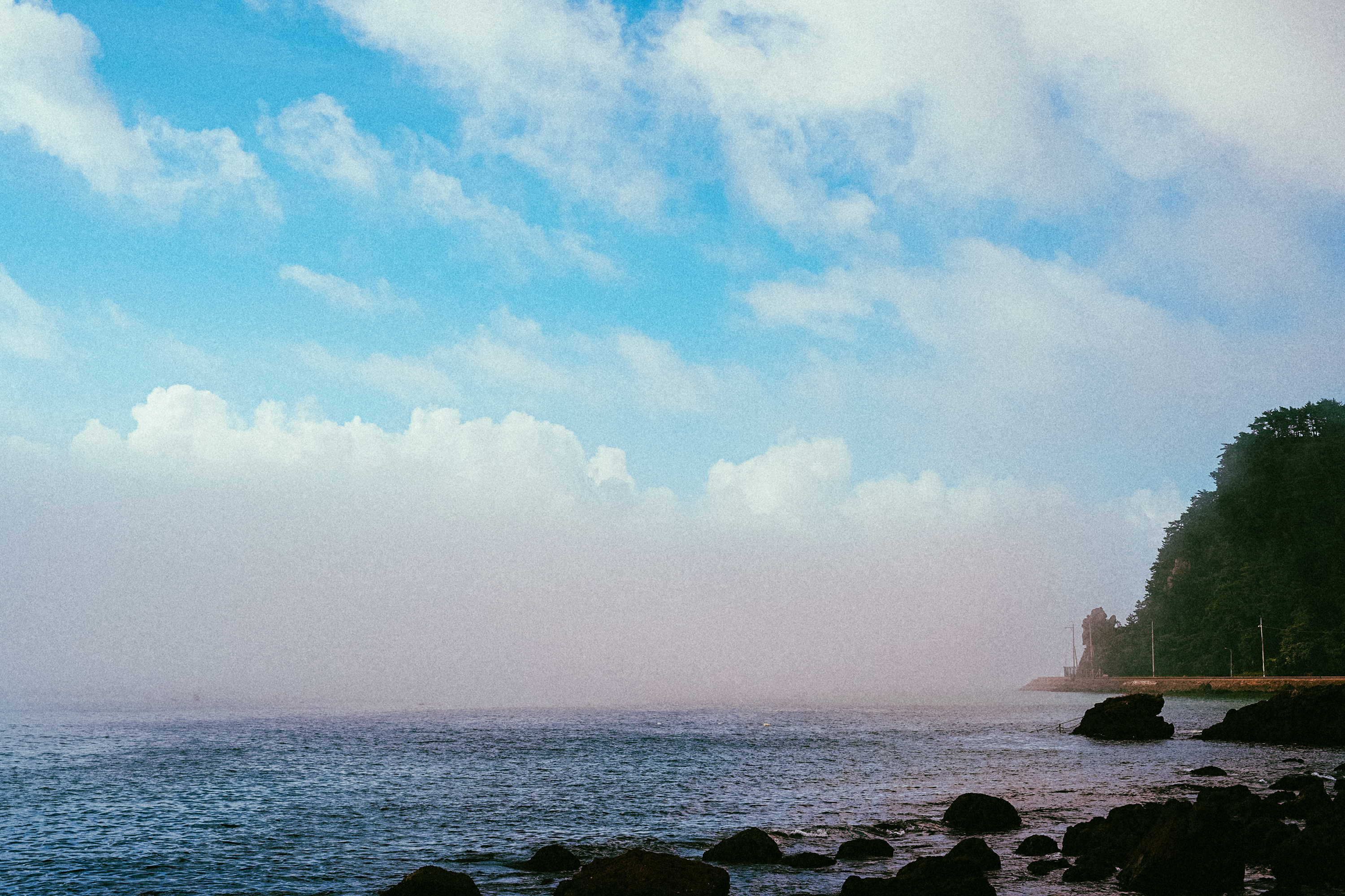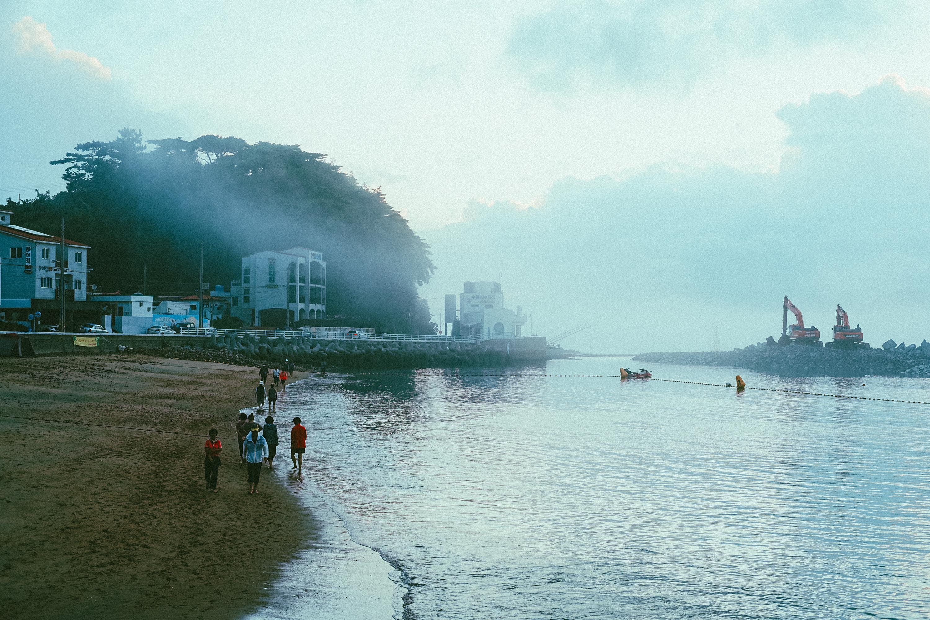 새벽이 되자, **해안가에는 안개가 자욱하게 깔렸어요.** 공기도 습했고, 땀으로 인해 몸이 금방 끈적해졌죠.