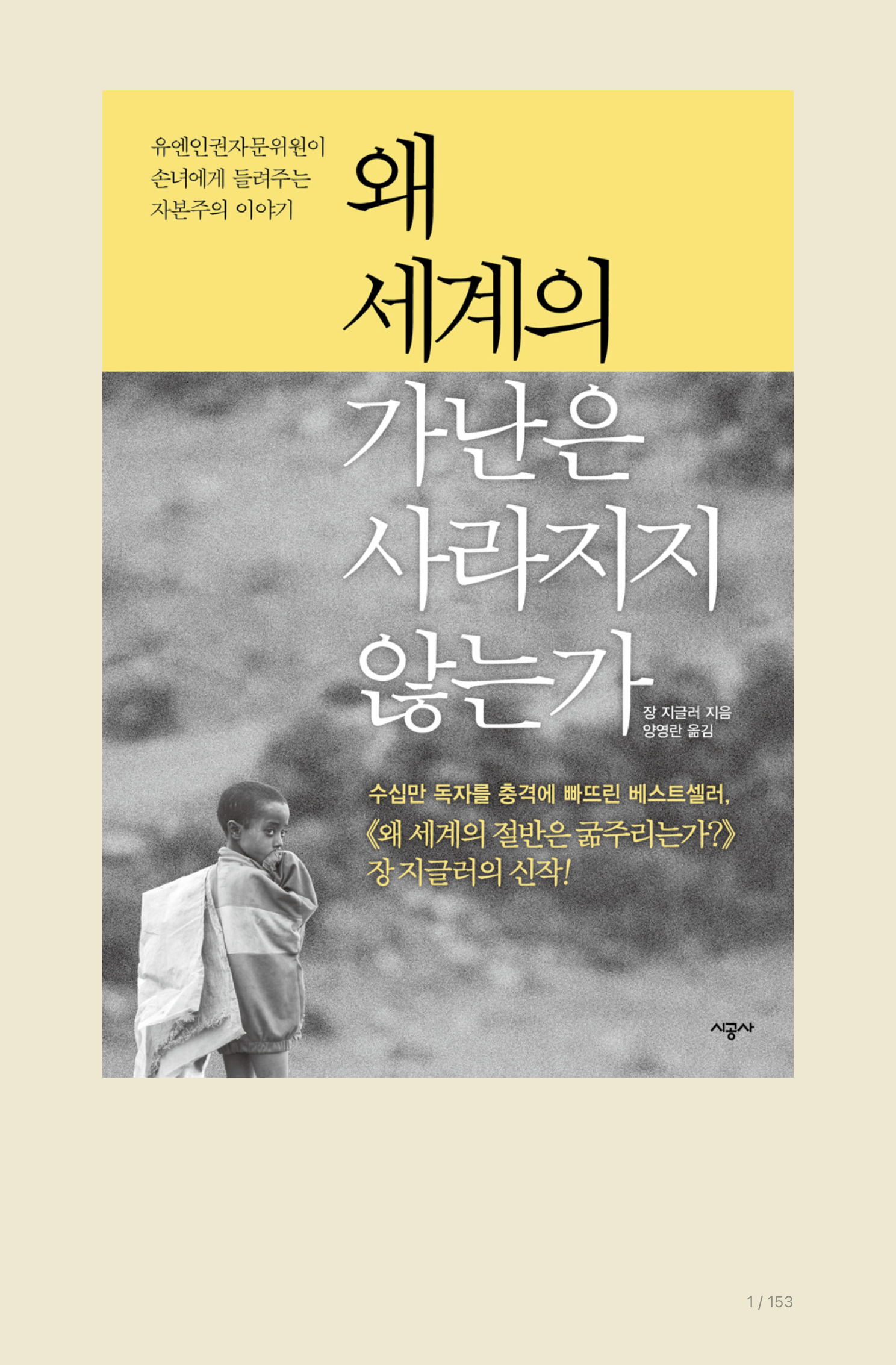 주말을 이용해서 한 권의 책을 읽었다. 심리학 분야의 책은 여전히 어렵다. 이번에는 좀 가벼운 마음으로 책을 읽고 싶었다. 그래서 선택한 책이 이 책이다. '왜 세계의 가난은 사라지지 않는가'이다. 분량이 가벼워서 가볍게 읽을 수 있으리라 생각했는데, 절대 가벼운 마음으로 읽을 책이 아니었다. 책을 읽는 내내 마음이 무거웠다. 책은 작가와 손녀가 이야기하듯 풀어낸다. 작가는 책을 통해 자본주의에 대한 문제점을 전달한다. 어릴 적 공산주의에 대한 사상교육을 받은 게 내 나이 또래가 마지막 세대일 거라 추정된다. 그 때문일까 공산주의는 무조건적으로 악이요 자본주의는 좋은 것이라는 생각을 했었다. 그런데 이 책을 읽으면서 자본주의에 대해 다시금 생각하게 되었다.