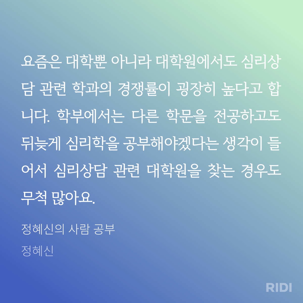 회사에서 직무에 대한 경험이 쌓이고, 해당 분야에서 직무와 관련해서 계속 공부를 하고 꾸준히 책을 읽으며 팀원들과 상담하는 기회가 생겨났다. 그런 시간을 가지면서 카운슬러가 되고 싶다는 생각을 했다. 지금의 생각을 가지고 과거로 돌아갈 수 있다면 그런 직업을 찾게 될 것 같다. 어쩌면 정신과 의사가 그런 분야가 아닐까 생각한다. 늦었을까? 늦다고 생각하는 지금이 기회일 수 있다. 꼭 정신과 의사일 필요는 없다. 카운슬러의 범주는 꽤 넓다. 지금부터라도 꾸준히 책을 통해 공부를 해 나간다면 앞으로도 기회가 있을 거라 생각하다. 어쩌면 카운슬러라는 직업은 지식과 경험이 많으면 더 좋기에 은퇴 후가 더 좋을 수 있다고 생각한다.