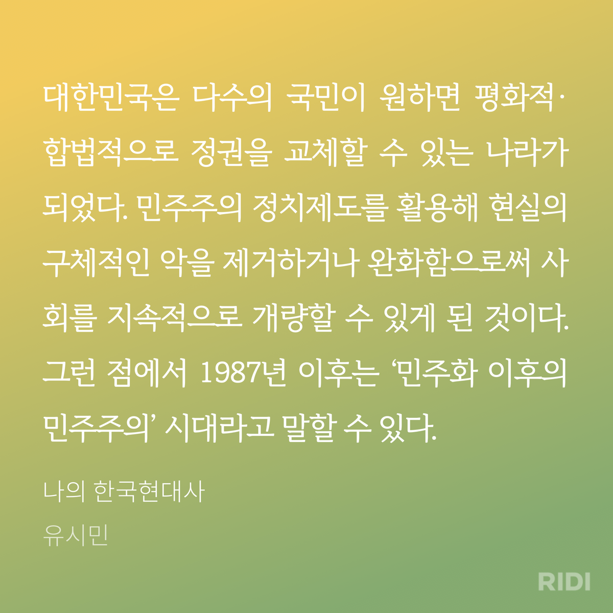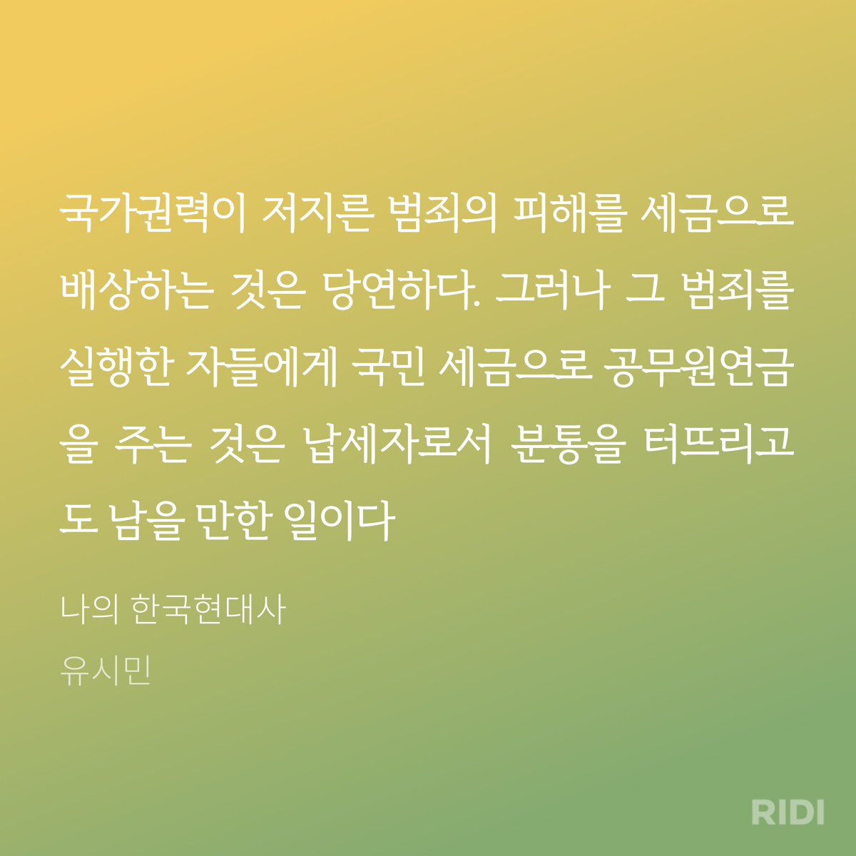 2023년 나는 50대의 삶의 살아가고 있다. 1973년부터 지금까지 나는 50년의 대한민국을 직접 경험했다. 현대사는 직접 몸으로 경험했기 때문에 경험하고, 보였던 모든 내용들이 사실이라 생각하기 쉽다. 나 역시 그랬다. 그러나 최근 읽은 몇 권의 책을 통해 예전과 다른 생각을 한다. 내가 보고 느꼈던 많은 것들이 어쩌면 처음부터 의도되고 편향된 정보일 수 있다는 사실이다. 때문에 내가 사실로 받아들이고 있는 내용들이 어쩌면 사실이 아닐 수도 있다는 것을 받아들여야 한다. 이 책이 내게는 그랬다.