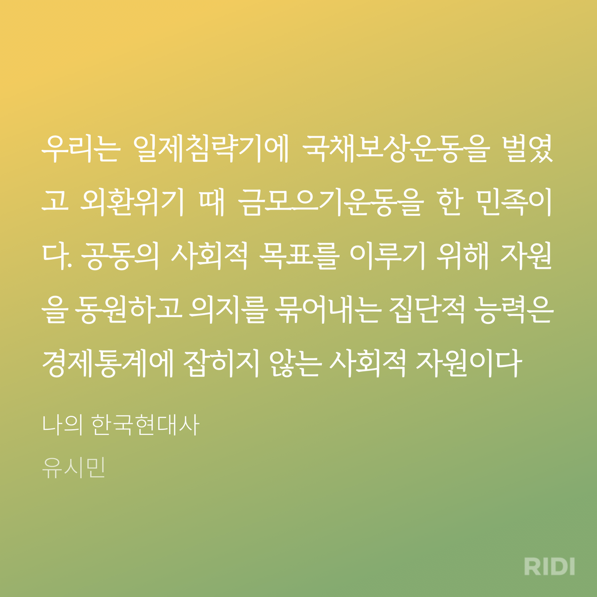 사람들은 자신을 모르고 있다. 박정희 대통령에 대한 향수로 인간 박정희를 좋아하는 것이 아니라 암울하고 힘들었던 시대를, 그 역경을 이겨내고 지금의 자리에 오기까지 자신이 쏟았던 영정과 이루었던 성취, 자기 자신의 인생을 좋아한다는 말에 공감한다. 많은 사람들이 진정 자신이 좋아하는 것이 무엇인지를 깨달았으면 한다. 그리고 이 책을 통해 권력자들이 내게 해 줄 수 있는 게 무엇이고, 그들이 진정 나를 위하는 사람인지 제대로 깨달았으면 한다.