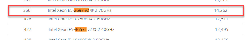 그런데 아니다. 싱글코어가 낮다 보니 성능은 E5-2697 v2가 가장 높다.